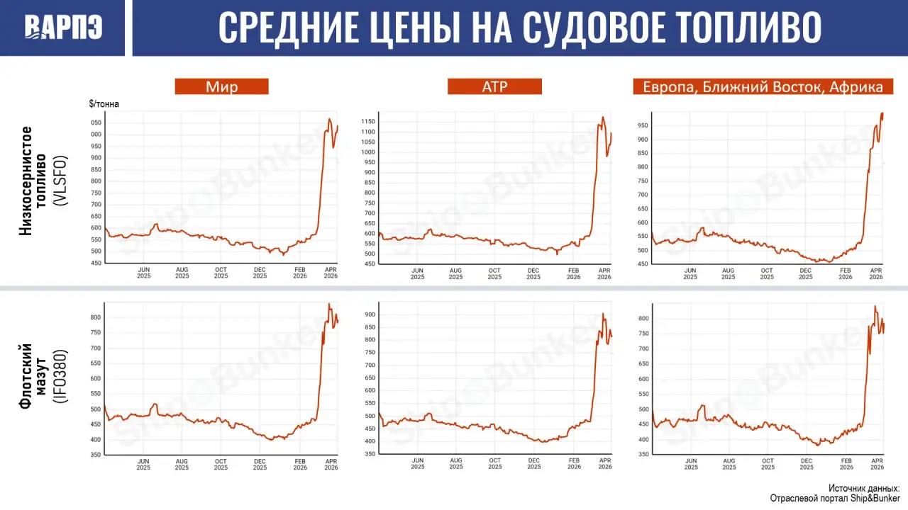С начала 2026 года цена на низкосернистое топливо возросла в 2,2 раза – до 1174 долл./тонну (по состоянию на 20 марта т.г.), и цена на флотский мазут возросла на 114%, составив 875 долл./тонну, то есть разница – около 300 долл./тонну. Оба эти вида топлива используют рыбопромышленники по всему миру для заправки судов.