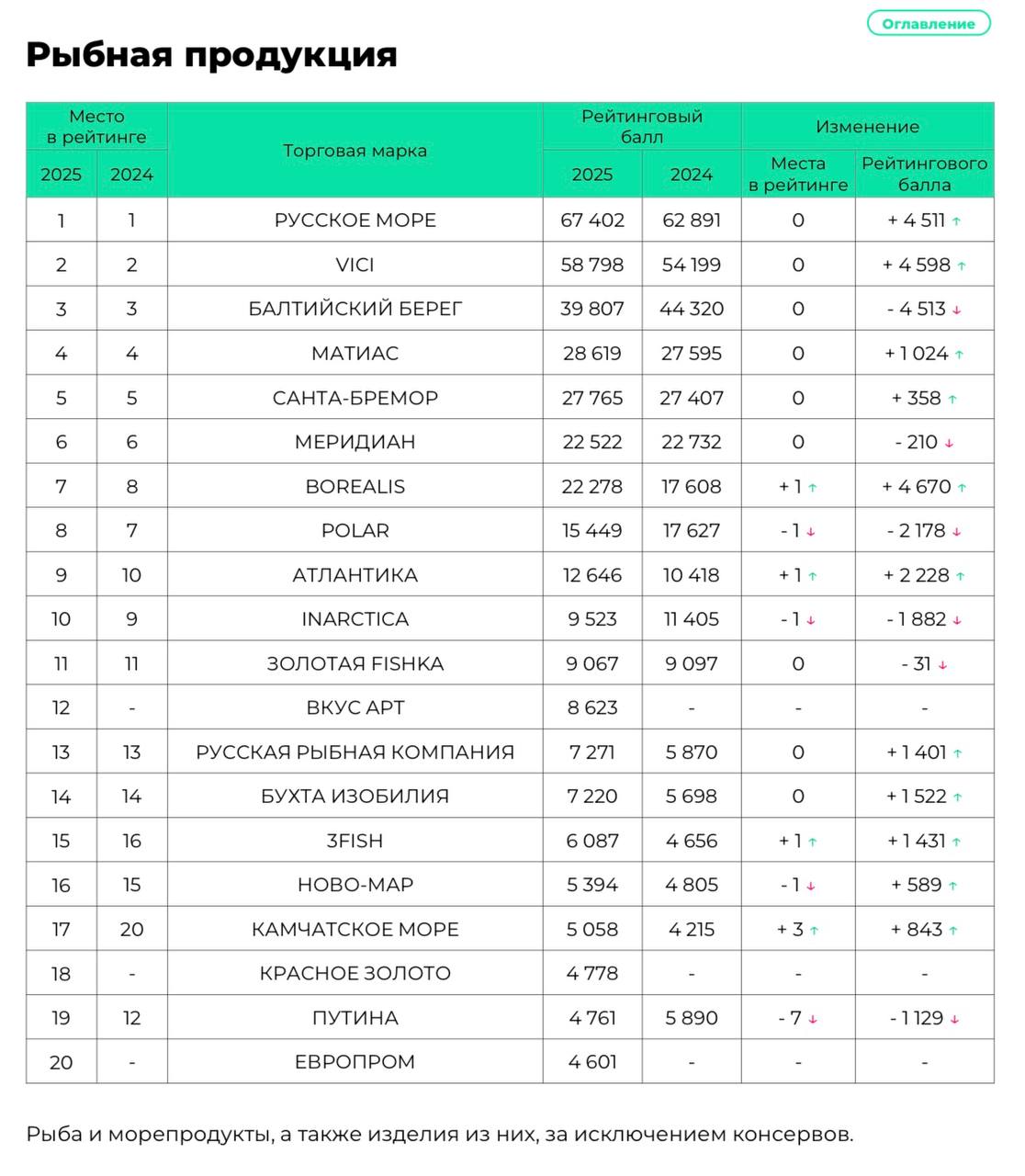 ТОП-20 брендов рыбной продукции по итогам 2025 года (инфографика)