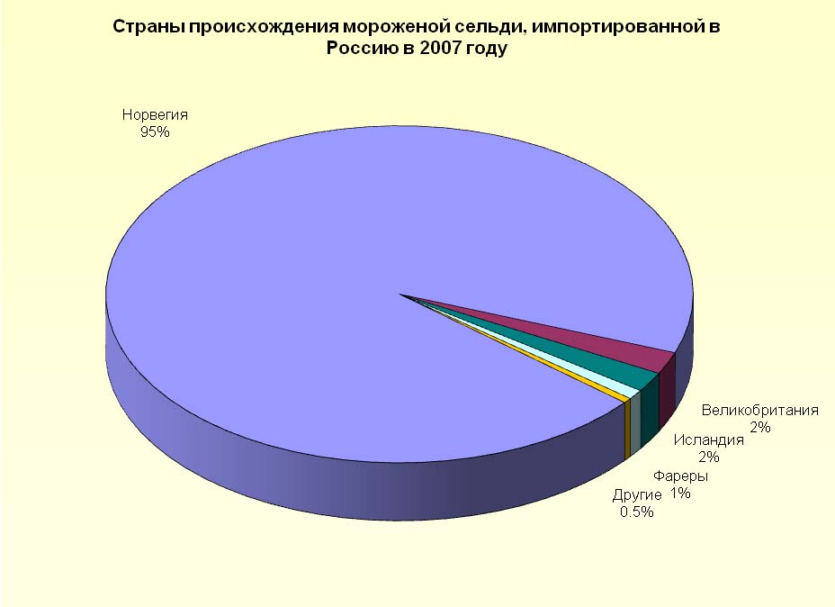 В 2007 году на российском рынке мороженой сельди наблюдалось укрепление положения Норвегии и сокращение долей других поставщиков. В большей степени на такой ход событий повлияли цены. Норвежская сельдь была самая дешевая по сравнению с продукцией основных конкурентов - Исландии, Великобритании и Фарерских островов.
