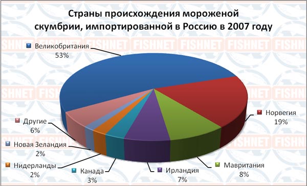 В 2007 году на российском рынке скумбрии впервые появилась продукция из таких стран, как: Дания (200 тонн), Йемен (5 тонн), Португалия (71 тонна), ЕС (131 тонна) и Тайвань (332 тонны).