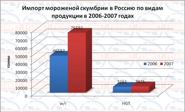 Импорт скумбрии в Россию в 2007 году вырос на 55% и достиг 83.567 тонн относительно 53.881 тонн годом ранее. Стоимость импорта выросла на 63% с 89 млн. долл до 145 млн. долл. Средняя импортная цена выросла всего на 5% с 1,65 до 1,74 долл/кг.