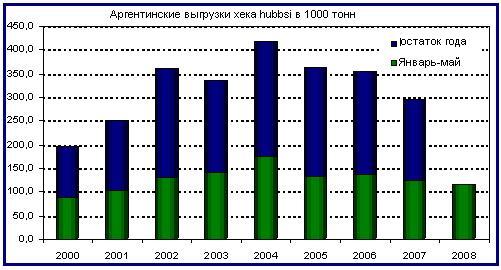 С января по май 2008 года выгрузки хека составили 167.073 тонны, что на 11% меньше относительно того же периода 2007 года (187.624 тонны). Выгрузки хека hubbsi составили 115.898 тонн, или 69% от всего объема, далее идет хоки в 49.684 тоннами (30%). Выгрузки всех видов оказались ниже, причем самый большой спад произошел по хоки -19%.