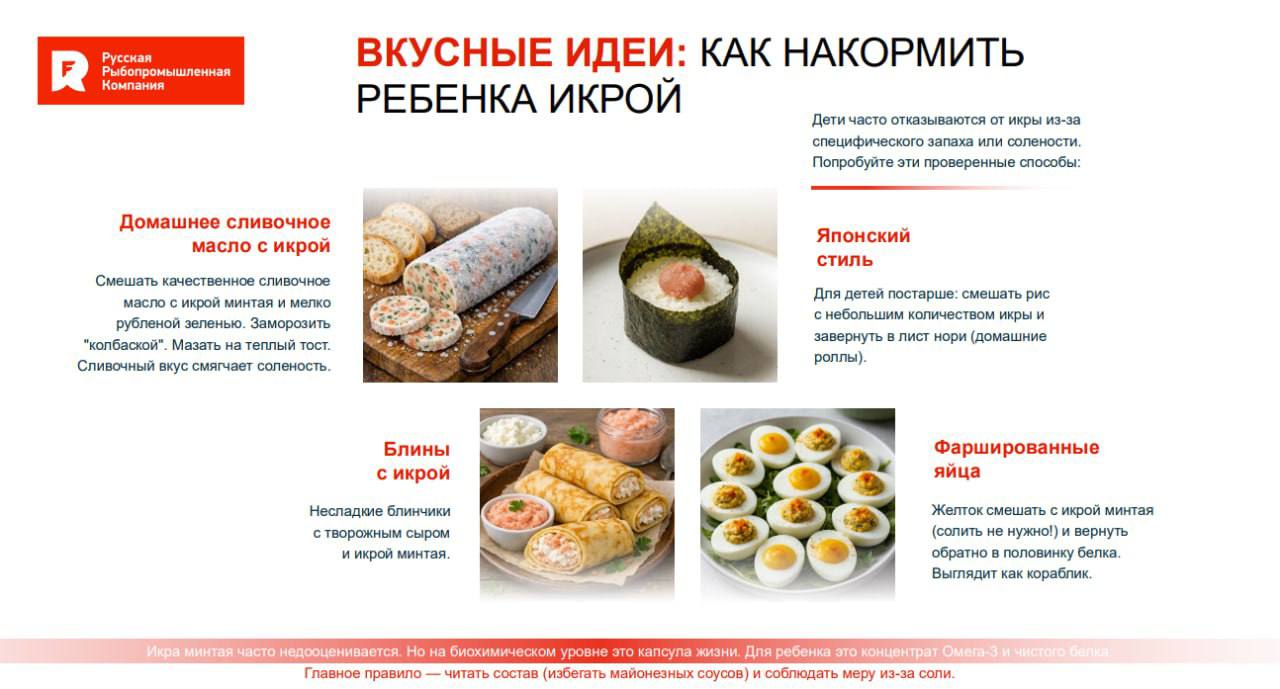 Технолог РРПК Олеся Гладкая: «Икра минтая — это продукт с чистым, нерезким вкусом, нежной текстурой и отсутствием горечи. Она не требует маскировки в сложных соусах и остается главной в любом блюде — от простого бутерброда до ресторанного тартара».