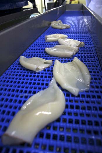 В настоящее время промышленной добычей кальмара на Дальнем Востоке занимается ОАО "Находкинская База Активного Морского Рыболовства" (ОАО "НБАМР"). Это одно из крупнейших рыбодобывающих предприятий России, на базе которого работает цех берегового перерабатывающего комплекса, специализирующийся на производстве именно филе кальмара (Командорского) или кальмара обесшкуренного индивидуальной заморозки.