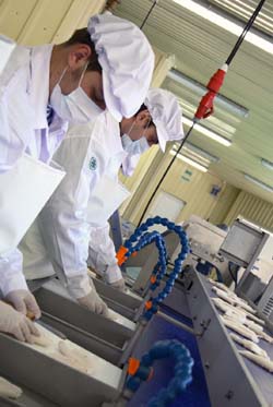 Главное отличие продукции этого Приморского предприятия от уже присутствующего на рынке кальмара заключается в том, что при производстве используются совершенно разные технологические подходы. Во-первых, продукция добывается на собственных судах, которые имеют сертифицированную систему контроля качества, и обладают правом экспорта своей продукции в страны Евросоюза. Во-вторых, кальмар очищается на механической линии, а это значит, что он не обваривается кипятком, как при самом распространенном способе обесшкуривания, и полезные вещества не разрушаются. В-третьих, нужно понимать, что природный цвет большинства кальмаров серый (у Командорского вида он светло кремовый) и белый цвет продукта - это результат процедуры отбеливания. НБАМР ферментативные способы обработки не использует, а значит филе кальмара в полной мере сохраняет уникальную пищевую ценность. В итоге такая технология позволяет добиться того, что в кальмаре остается 100% первичного продукта. Он также сохраняет свой естественный светло-кремовый цвет и розовую каемочку по краю.