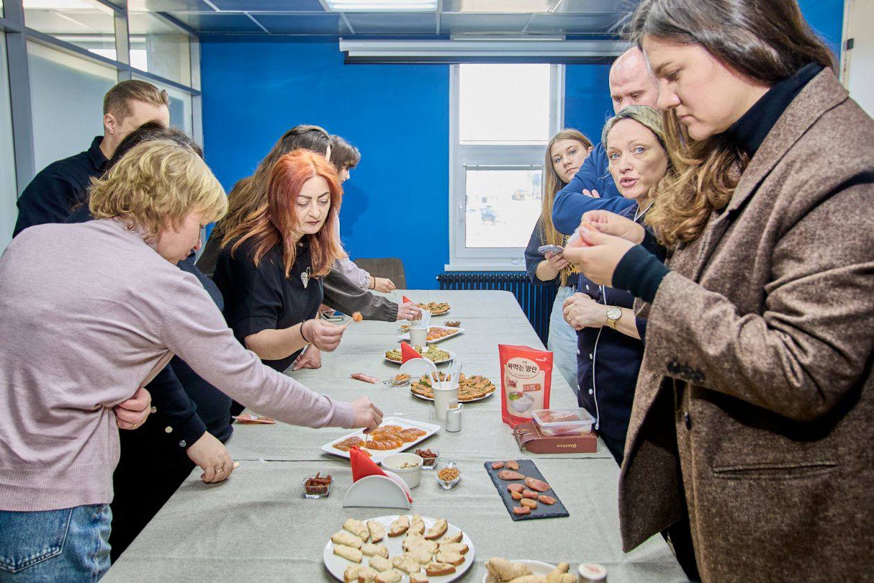 Затем гости завода отправились в лабораторию по разработке новых продуктов, где продегустировали икру минтая: классическую пробойную, намазки, солёные ястыки, приготовленные по японской технологии.