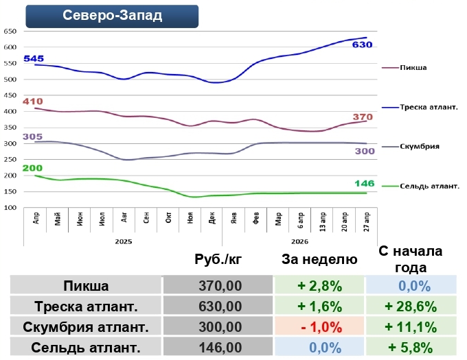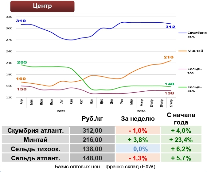 Еженедельный обзор ситуации на оптовом рынке рыбы (мониторинг на 27.04.2026)